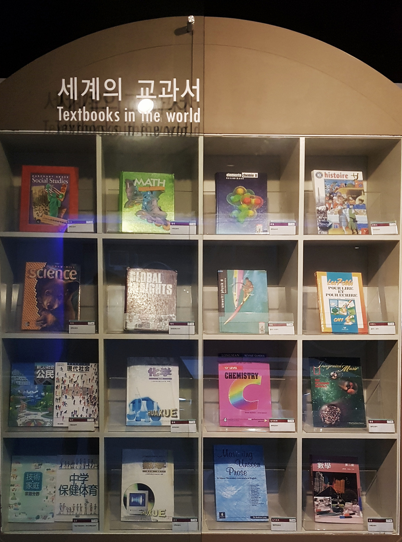 이렇듯, 교과서에는 각 문화를 대표하는 요소가 녹아들어 디자인이 완성된다. 각 나라의 문자로 교과서를 설명하는 디자인, 교과 내용에 따라 다양하게 운용되는 타이포그래피, 그리고 교과서 배경에 사용되는 패턴 등을 통해 디자인을 하기 때문이다. 교과서 박물관에는 이러한 이야기를 담은 세계의 교과서가 전시되어 있다.