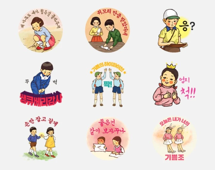 그림 3의 일러스트는 과거 교과서에서 흔하게 볼 수 있는 '철수'와 '영희'로 불리던 캐릭터다. 우라는 철수와 영희를 통해 국민학교와 초등학교 세대를 이어 주는 한국만의 추억 소재다.