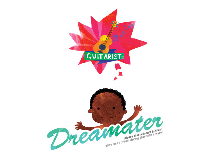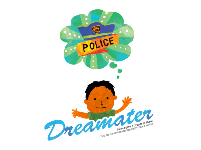 위의 내용과 함께 물 부족 국가의 어린이와 그들의 꿈을 그린 일러스트를 만들었습니다. 어린이들의 꿈은 기타리스트, 경찰, 선생님으로 설정하였죠.
