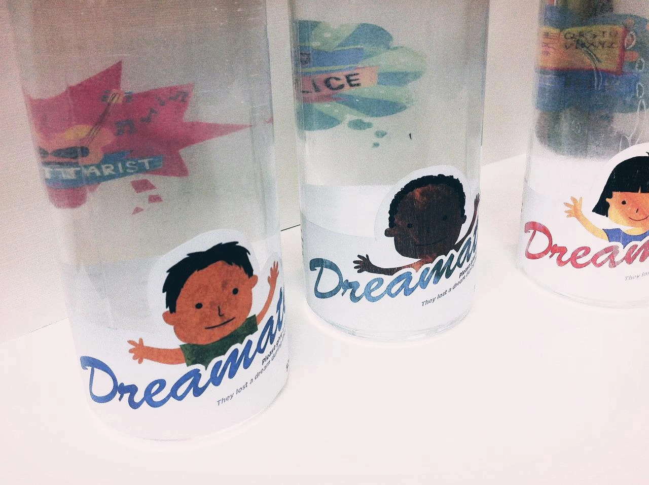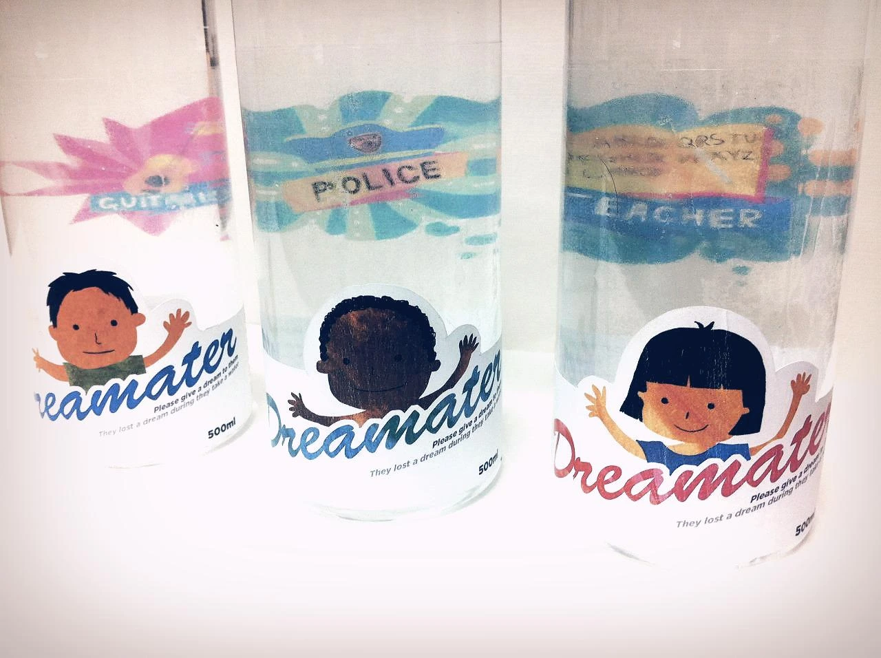 물이 가득할 때는 뒷 면에 붙여진 꿈이 굴절되어 크게 보이지만, 물을 다 마시게 되면 뒷 면의 꿈이 작아지는 방식을 통해 스토리를 전달하고자 했습니다. 물이 가득할 때 어린이들의 꿈도 커진다는 스토리 말이죠. 이러한 아이디어로 접근한 디자인의 프로토 타입은 아래처럼 만들어졌습니다.