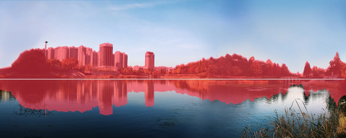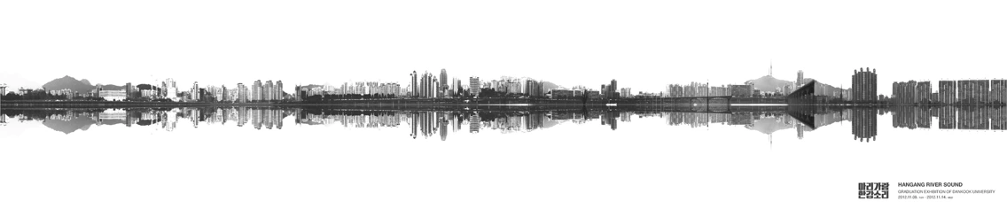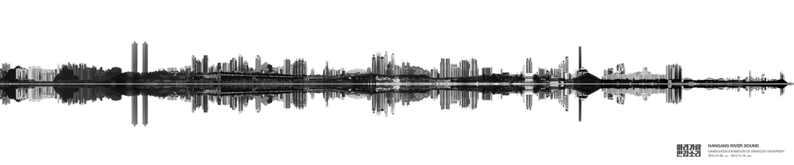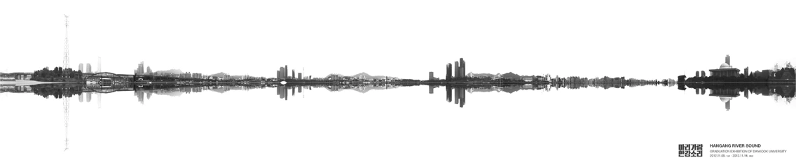 자전거를 타고 한강을 계속 보다 보니 반사된 건물들의 풍경이 이어지는 것은 마치 소리의 음파처럼 보였습니다. 그래서 간단한 실험을 해봤습니다. 한강 둔치에서 촬영한 이미지를 파노라마로 만들어 건축물과 반사된 풍경을 잘라내어 음파로 만들어본 실험이었죠.