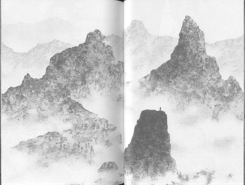 타케히코 이노우에의 만화 [배가본드]에서는 주인공인 '미야모토 무사시'가 천하무적이 되기 위한 꿈을 가지고, 자신만의 답을 찾으러 유랑을 하게 됩니다. 유랑을 하던 중 천하무적을 상징하는 꼭대기에 오르며 정상을 보고 싶다고 말을 하지요. 마침내 정상에 오른 무사시 앞에는 안개에 가려져 있던 더 높은 산들이 나타나게 됩니다. 무사시는 자신이 오른 정상은 현재 여기까지지만, 눈 앞의 산을 보며 얼마든지 성장할 수 있다고 이야기를 하게 되지요.