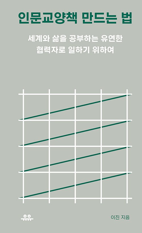 『인문교양책 만드는 법』 앞표지에는 끝 꼭짓점에서 뻗어 나온 실선이 세로줄을 가로질러 다시 대각선 방향의 꼭짓점 끝으로 이어지는 모양을 격자 위에 반복하였는데, 인문교양서 편집자가 유연한 협력자로서 여러 사람을 잇는 것을 형상화한 디자인이 아닌가 싶다. 뒤표지에도 마찬가지로 같은 콘셉트를 나타내는 들어가는 글의 일부에 격자가 배경으로 삽입되었고, 부제의 의미를 보충 설명하는 카피가 따로 쓰였다.
