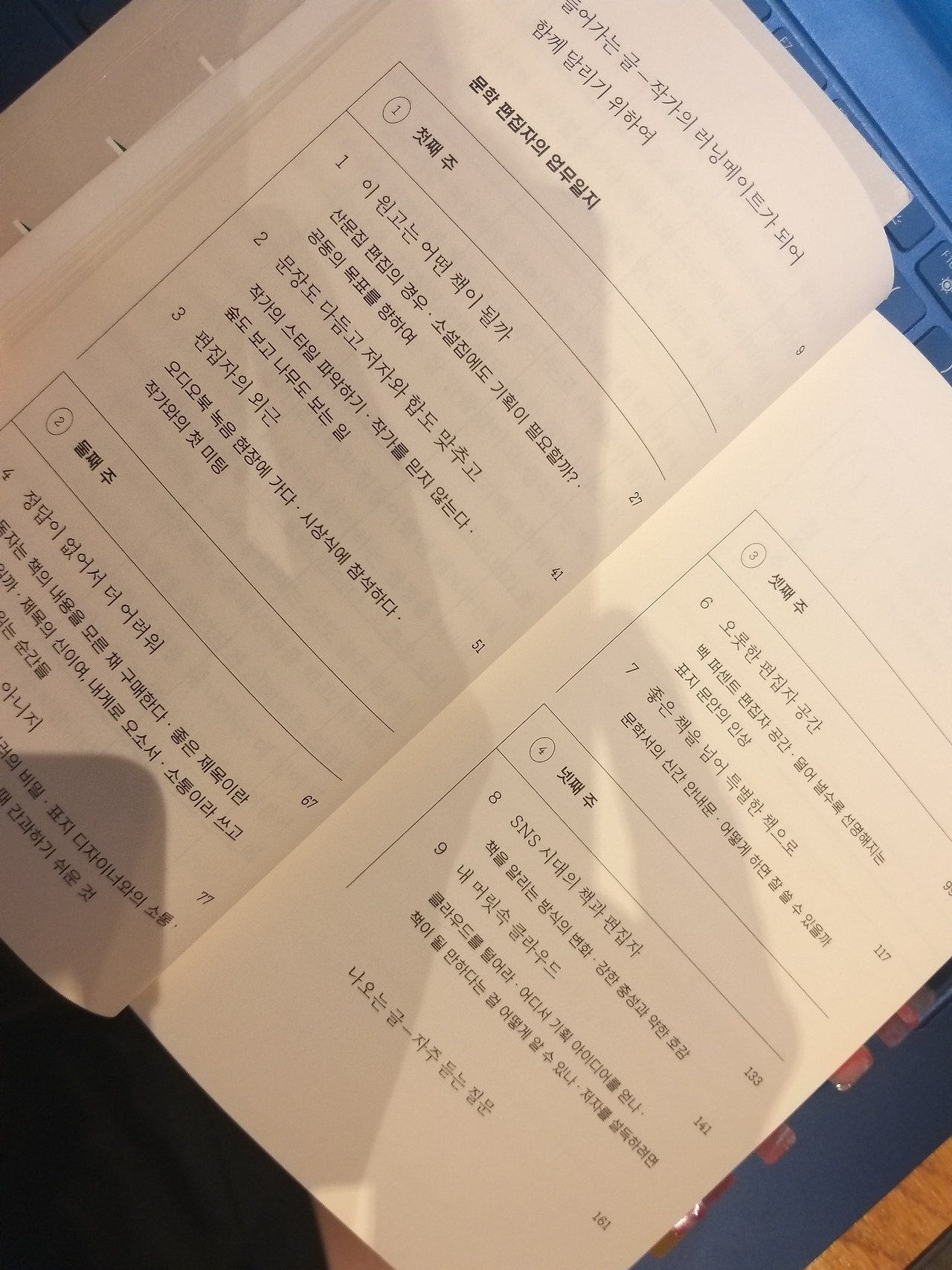 '문학 편집자의 업무일지'처럼 연출된 차례면