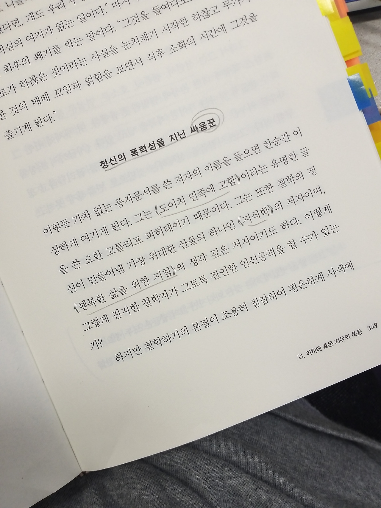매일 폈다 덮었다 할 때 600페이지의 무게를 못 견딘 탓인지 양장 제본이 다소 헐거워지도록 책이 망가지고 말았습니다. 표지에는 얼룩이 졌고, 마찰 때문에 책등의 모서리가 닳았습니다. 그래도 600페이지의 철학 입문서를 읽는 게 생각보다 마냥 고통스러운 일은 아니었습니다. 되레 읽으라고 권장하고 싶은 마음이 들더군요. 그 이유를 주저리 늘어놓아 보겠습니다.