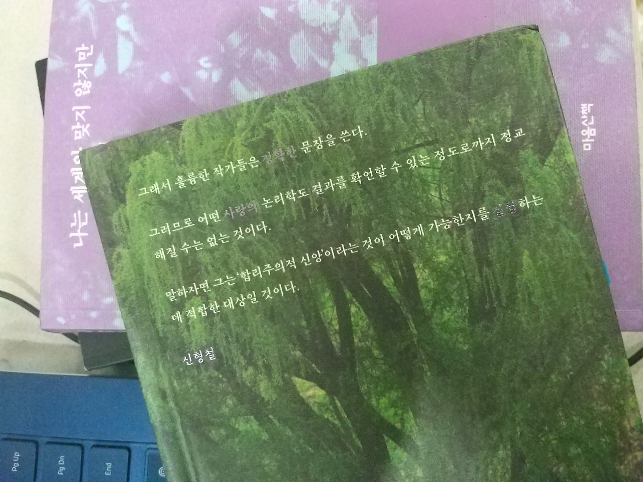 최근에는 진은영 시인의 산문집 『나는 세계와 맞지 않지만』이 같은 출판사 마음산책에서 『정확한 사랑의 실험』과 무척 흡사한 기획으로 출간되었다. 두 책 모두 주간지에서 연재하던 글을 새로 엮은 것이라는 점에서 같고, 또 예술 작품을 주제로 다룬다는 점에서 같다. 또 두 책은 비전문가가 접하면 이해하기 힘들 수도 있는 주제-영화와 고전 문학-를 다루고 있음에도 읽기 어렵지 않다. (디자인도 어딘가… 비슷하다!) 심지어 『나는 세계와 맞지 않지만』도 『정확한 사랑의 실험』과 마찬가지로 발간되자마자 불티나듯 판매되었다. 그래서 나는 신형철 평론가가 그런 것처럼 두 작품의 공유 지대에서 양질의 콘텐츠를 생성하는 어떤 논리를 찾을 수 있을 것으로 생각했다.