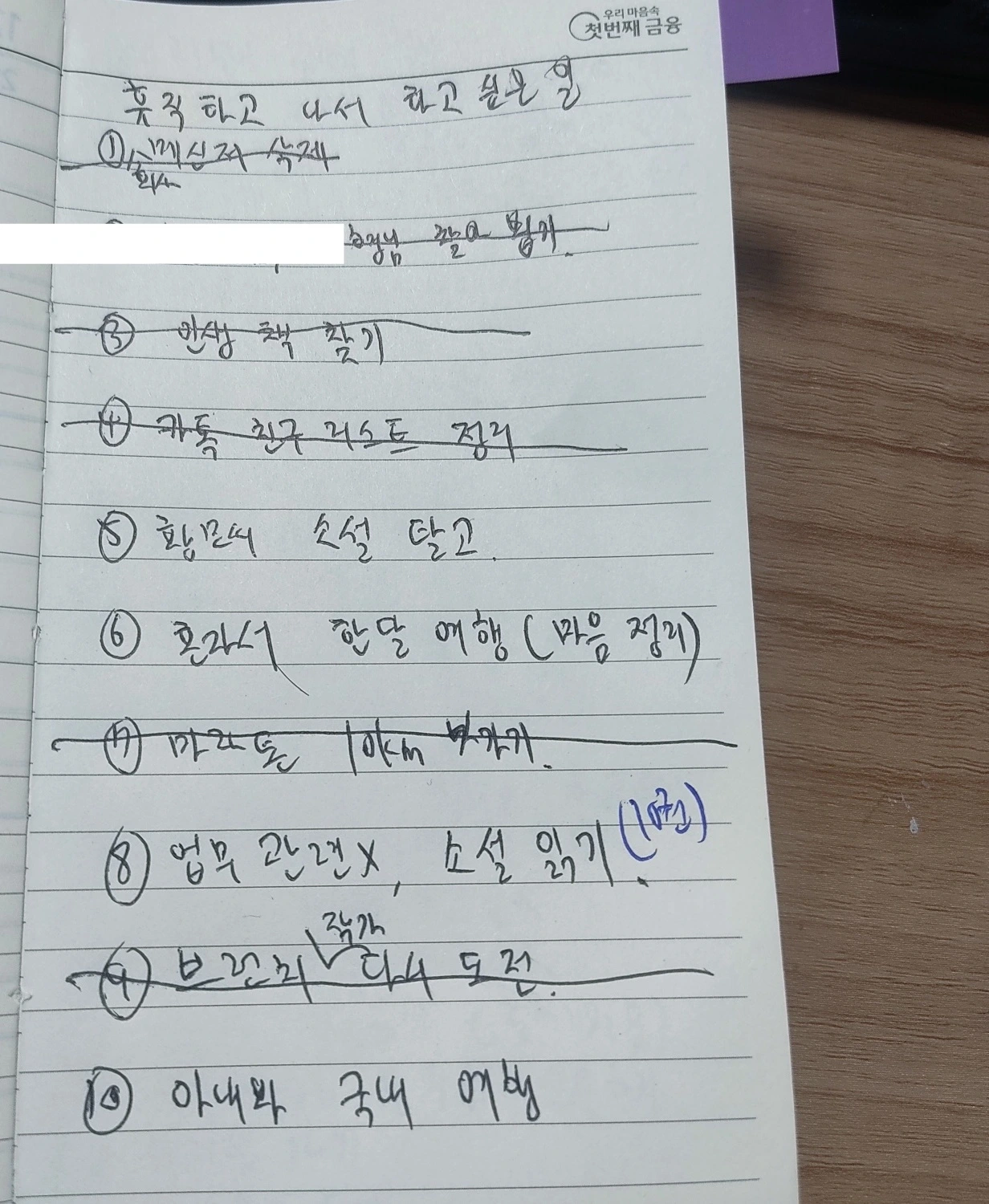 휴직할 때, 메모장에 하고 싶은 일 10가지를 적었다.