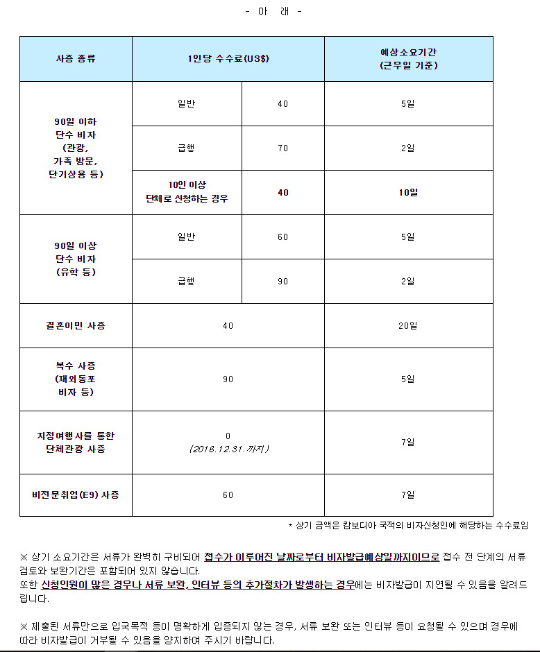 ※ 비자발급 수수료 : $40/1인