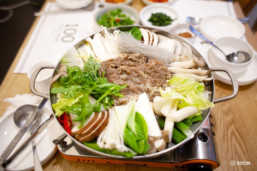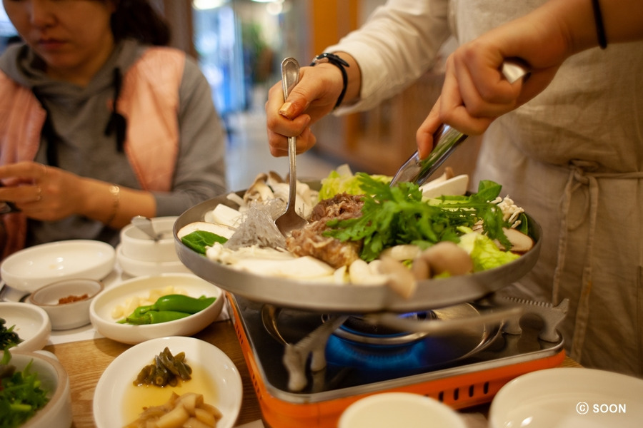한방 삼계탕은 한방의 느낌이 강했다. 집에서 하는 삼계탕보다 조금 더 한방의 느낌이 강했고, 닭가슴살도 퍽퍽하지 않고 부드러워서 좋았다. 한약 맛을 별로 좋아하지 않는다면 일반 삼계탕을 선택하길 바란다. 국물이 두 명이 먹기에는 조금이라 그 점이 아쉬웠다. 혼자 먹기엔 괜찮았다. 소고기와 버섯 등이 들어간 전골은 달달한 맛일 거라는 나의 착각과는 다르게 단맛이 거의 없어서 놀라웠다. 조금 더 달았어도 맛있게 먹을 수 있었을 것 같다.