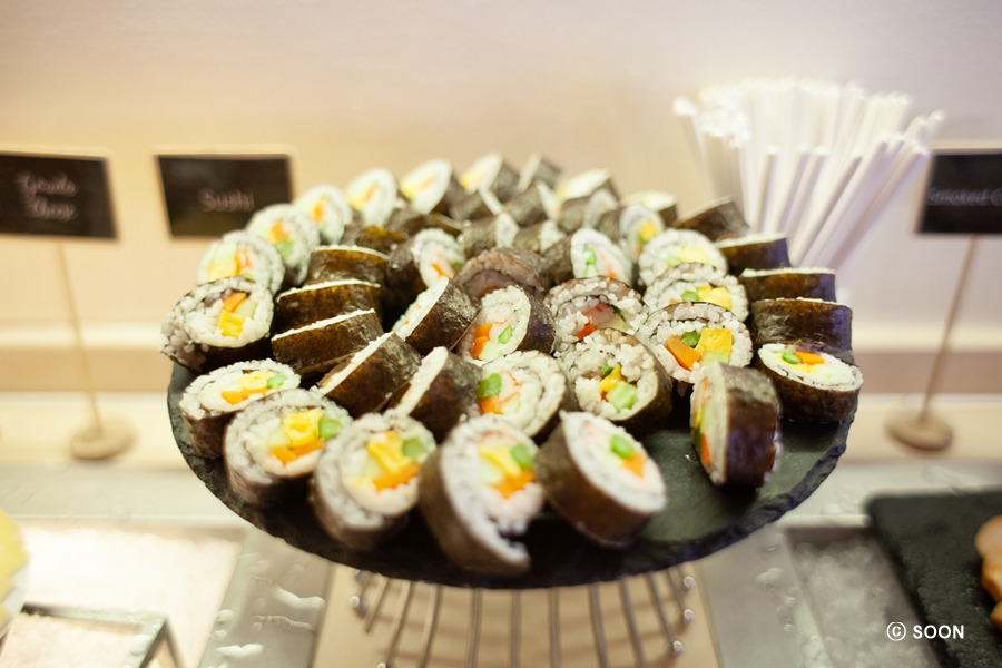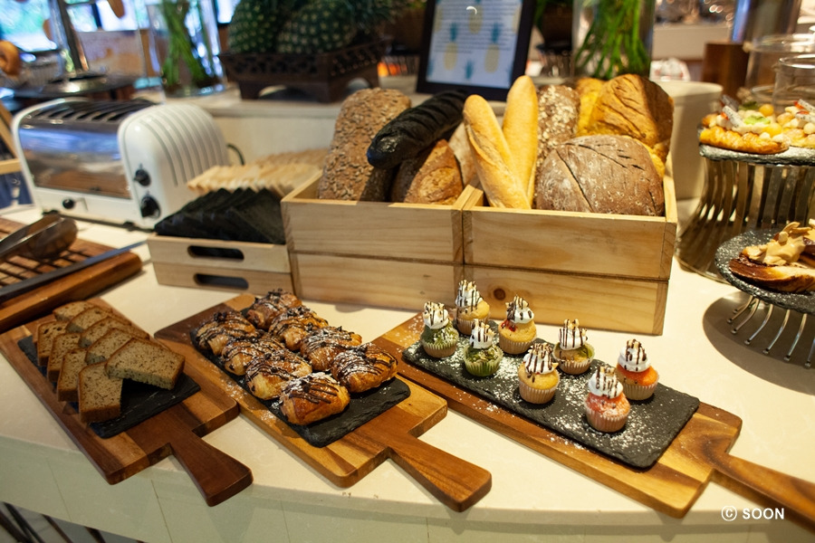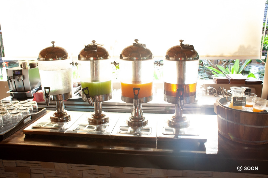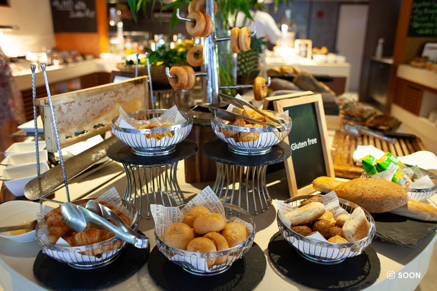 친구가 검색을 통해 이곳의 음식이 맛있다는 정보를 얻었고, 우리는 한껏 기대한 후 조식을 먹으러 갔다. 친구는 기대 이상의 맛이라며 감탄을 금치 못했고, 결국 다이어트는 물 건너갔다. 5성 다운 조식이었고, 맛도 좋았다. 전체적으로 깔끔하고 맛있는 조식이었다. 참고로 음료는 에어컨이 나오는 뷔페 쪽이 아닌 바깥쪽 레스토랑에 위치하고 있다. 커피의 경우 주문하면 가져다주는 시스템이라 편했다.