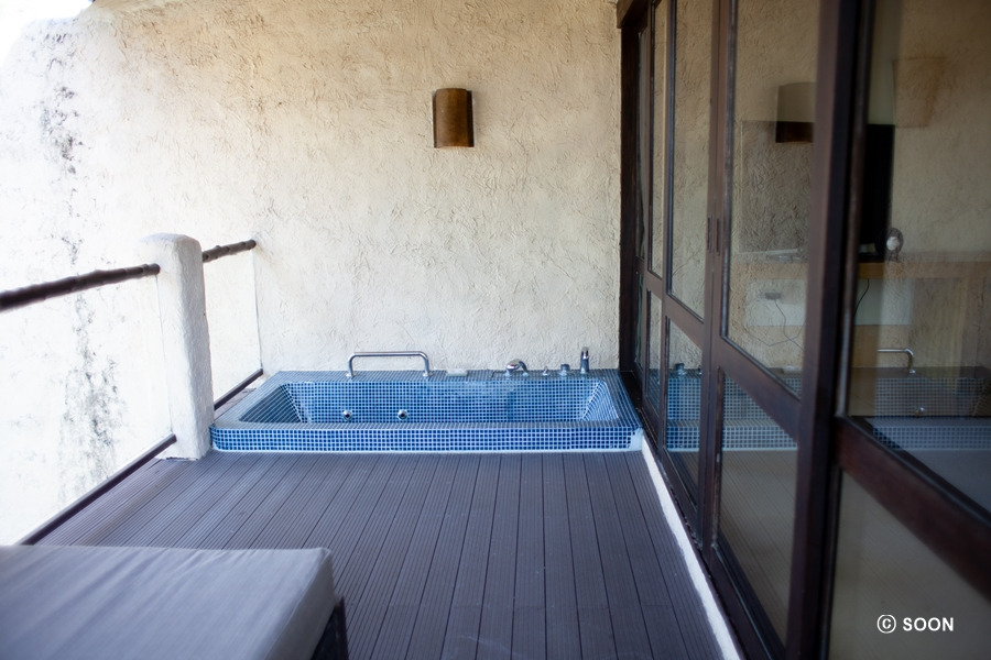 우리가 묵었던 숙소는 총 2층으로 된 빌라였고, 1층은 거실처럼 꾸며져 있었다. 메인룸은 2층이었고, 2층 베란다에는 자쿠지 욕조도 있었다. 숙소에 문의했을 때, 우리는 2명인데 트윈룸을 배정해 달라고 했었다. 한데 이곳은 대부분 커플이 방문해서 인지 트윈베드가 없었고, 그 대신 베드를 하나 더 넣어주신다고 하길래 1층에 베드를 하나 부탁드렸다.