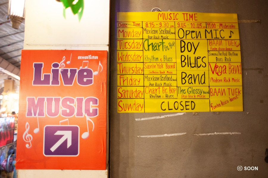 치앙마이 나이트 바자에 방문한다면 한번쯤 방문해 볼만한 라이브 바로 일요일을 제외하고 매일 밤 8시부터 라이브 음악을 즐길 수 있다. 나이트 마켓 2층에 위치해 있어, 선선한 바람을 맞으며 맥주 한잔에 올드팝이나 포크 또는 락앤롤 음악을 라이브로 즐길 수 있다.
