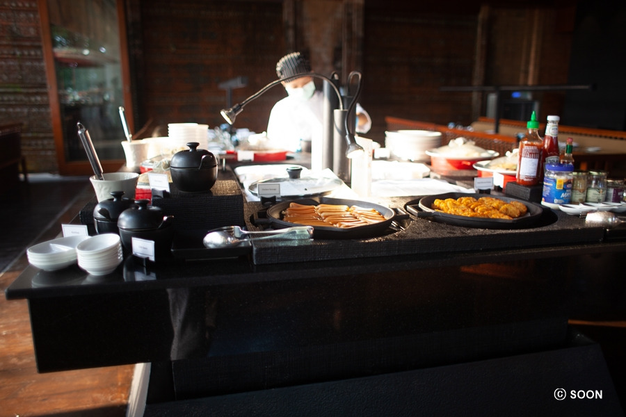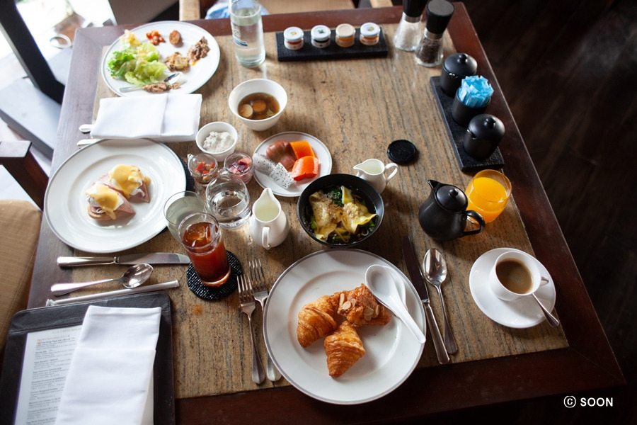 플라잉 요가를 마치고 조식을 다시 먹으러 갔다. 1시간 후에 쿠킹클래스만 아니라면 조식을 더 먹고 싶을 정도로 조식은 다양했다. 정말 많은 음식이 있었는데, 특히 빵 코너가 진짜 대박이었다. 빵 좋아하는 분들에게는 아난타라 리조트 추천! 싱겁게 먹는 편인 나에게는 간이 조금 센 음식도 있었지만 대체적으로 훌륭한 편이었다.