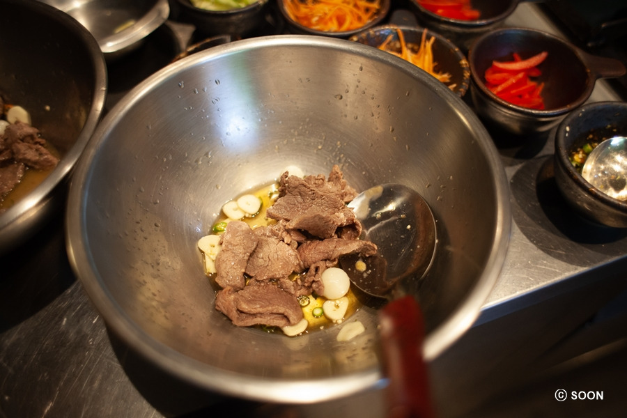 마사지 잘 받고 레스토랑으로 저녁 먹으러 ㄱㄱ 예약되어 있는 자리가 2층 실내였는데, 비가 와서 그런지 실내가 너무 추워서 실외로 달라고 부탁드렸더니 다 예약이 꽉 차서 내가 담당자 명함 꺼내니까 그때 알아봐 주겠다고 해서 결국 우리는 1층 야외 자리를 얻을 수 있게 되었다. PR 담당자가 직접 와서 우리 메뉴 선택하는 것도 도와주고 이런 면에서는 정말 좋았다.