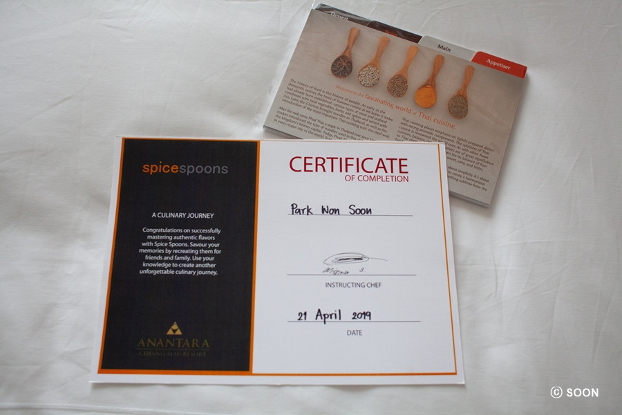 재밌게 쿠킹클래스를 마치고 사진 찍고, 앞치마랑 레시피북도 받고, 배가 불러서 만든 요리는 우리 방으로 포장해서 가져다주는 서비스까지 해줬다. 나는 호텔 측에서 제공받았지만 오전에 2개의 액티비티는 정말 모두 훌륭했다.