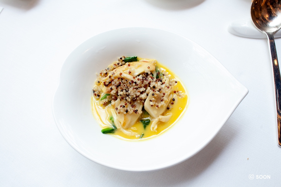 1시에 춘 레스토랑 앞에서 담당자를 만났다. 사람들이 너무 많아서 오~ 이곳 맛있나 보다 했다. 대부분 중국사람이었던 것 같다. 아무래도 중식당이다 보니 현지분이 많았던 것 같다. 어제와 마찬가지로 코스로 제공되었는데, 포시즌에서 미슐랭 3 스타도 맛보았지만 별반 다르지 않아서 놀라웠다. 뭔가 미슐랭 3 스타는 정말 맛있고 좋았던 걸로 기억했는데, 이곳은 어제부터 나에게 인생 음식을 하나씩은 주는 것 같았다. 개인적으로 포시즌 미슐랭 레스토랑에서 베스트 음식은 딤섬이었는데, 이곳 역시 딤섬이 정말 맛있었는데 그중에 당근 모양의 딤섬이 새로웠고 정말 맛이 좋았다. 그리고 나머지 음식들도 대부분 훌륭했다.