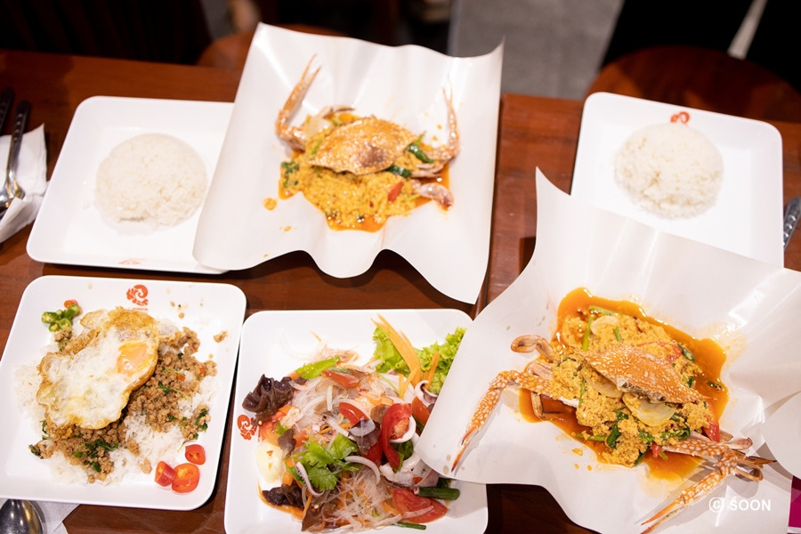 다 구경하고 미나 라이스 쿠진 갔는데 주말이라 대기가 1시간이라길래 그냥 센트럴 페스티벌 치앙마이 푸드코트 가서 먹자고 내가 꼬셔서 어제 가려고 했다가 피곤해서 못 간 센트럴 치앙마이 지하 푸드코트 가서 풋팟퐁 커리랑 팟카파오 무쌉이랑 얌운센이랑 과일주스 시켜서 맛있게 먹고, 아이쇼핑하고, 그랩 타고 핑강 바리스트로 가서 커피랑 케잌 시켜서 먹으면서 힐링하고 쉬었다가 나중에 나와서 핑강 배경으로 사진도 찍고 그랬다.