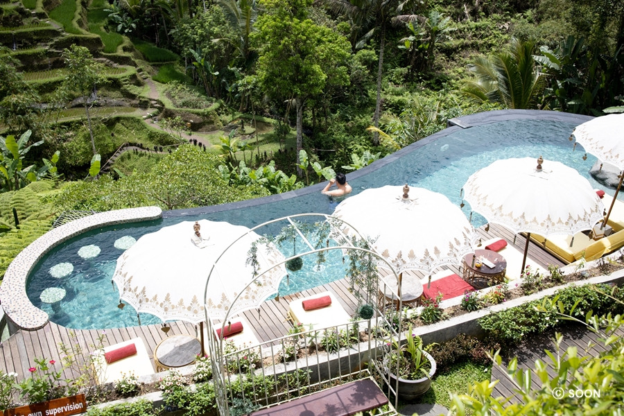 우붓 시내에 위치해 있어서 정말로 도보로 모두 가능해서 여긴 좋았습니다. 단점 빼고는 다 장점인 곳이라서 일단 단점을 먼저 말씀드리면 가격, 그리고 작은 수영장, 낡은 TV, 블루투스 스피커 없음, 리셉션과 묵었던 방의 건물이 달라서 왔다 갔다 하기 힘듦 등이 있었고, 나머진 모두 너무 좋았습니다. 특히나 숙박객에게 모두 제공되는 에프터눈 티가 생각보다 훌륭했고, 무료 프로그램이 너무나 훌륭했고, 또 30분 사진권 이게! 프로페셔널 사진가랑 숙소 안에서 돌아다니면서 약 20분간 촬영하고 리셉션에서 5분 정도 기다리면 포샵해서 가져오는데 택 2 해서 이메일로 보내줍니다. 인생 샷 2장 건질 수 있는데, 사진사가 계속 사진 더 사라고 너 다 가질 수 있다고 하는데 장담 25만루피아라서 노! 외치시고 그냥 딱 2장만 픽 하시는 걸 추천드려요! 30분이라서 시간도 얼마 안 걸리고 퀄리티도 너무 괜찮습니다. 묵으시는 분들은 꼭 인생샷 건지시길 바랍니다. 그리고 수영장에서 일몰 보면서 수영하시거나 사진 찍으시는 걸 추천드립니다. 방에서 초록초록 한 뷰 보면서 베란다에서 에프터눈 티 먹고, 조식 먹고 그랬던 시간이 너무 좋았어서 혼자나 커플, 친구 등 2인 숙소 위치 중요하게 생각하시는 분들에게 추천드립니다. 가족분들은 근처에 있는 비스마 에잇 빌라 있더라고요 여기도 괜찮은 것 같아 보였습니다. 무료 요가 클래스 때 비가 와서 빌라 요가 클래스 공간에서 했는데 이쁘더라고요^^