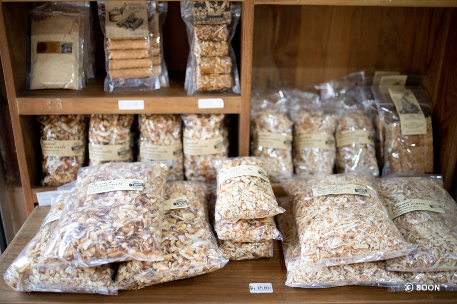 여기 6년 전에도 유명했는데 더 지점이 많이 생겼더라고요 한국분들도 많고, 가보니까 아이스크림 많이 드시는데, 로스트 코코넛 뿌려져서 나오는데 이거 너무 맛있어서 그리고 가성비도 좋아서 저는 많이 사 왔습니다. 제일 큰 게 부피는 크지만 무게가 안 나가서 과자라고 생각하시면 되는데 100% 리얼 코코넛이라서 돌아와서 아이스크림에 뿌려먹으려고 저는 65000루피아짜리랑 25000루피아짜리 작은 걸로 중간 것도 있긴 했는데 대중소 중에 대자랑 소자만 샀어요. 가성비도 나쁘지 않고, 참고로 여기서 코코넛 버터 잼도 파는데 KOU CUISINE보다 거의 반 가격이라서 여기서 삼^^ 코코넛 버터 잼 제일 큰 거 55000루피아 2개 삼!