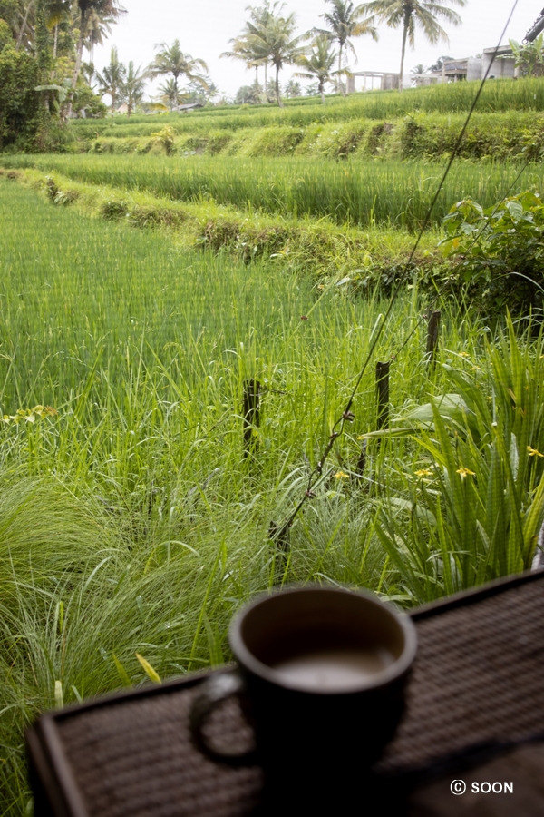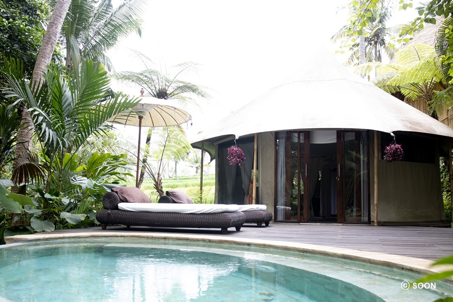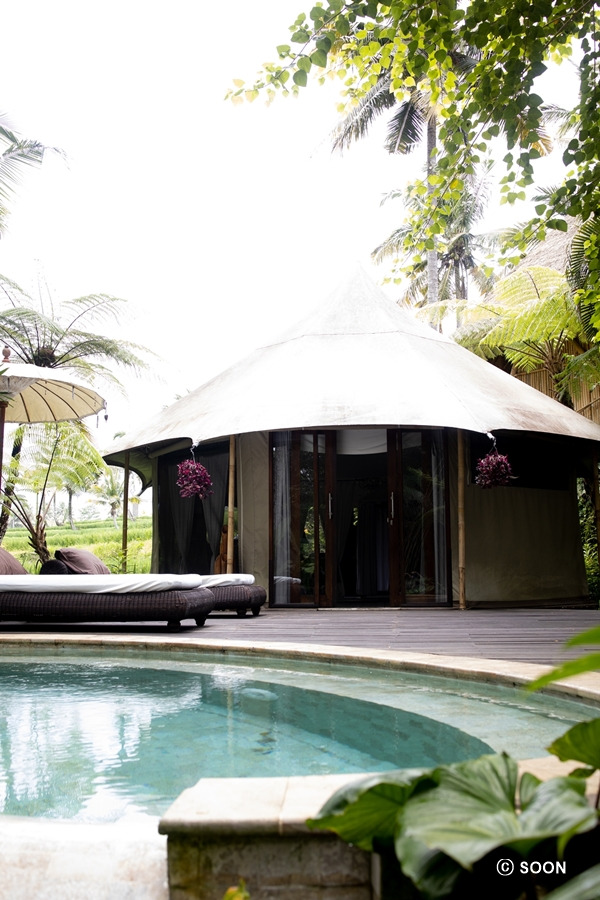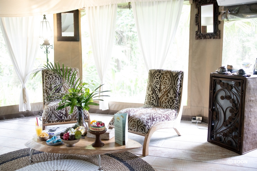 글램핑 텐트에서 2박 3일간 지내는 건 처음이었는데, 색다른 신기한 경험이었고, 힐링되는 시간이었다. 우붓 시내에서 차로 15분만 가면 이렇게 초록 초록한 논 뷰를 보면서 글램핑을 즐길 수 있다는 것도 너무 좋았고, 또 여기는 셔틀이 있어서 아침부터 저녁까지 1시간 전에만 예약하면 픽업, 샌딩 모두 무료로 가능해서 그 점도 큰 장점이었다. 물론 비 오는 우기여서 밤에 잘 때 소음이나 벌레 등이 단점이 될 수 있겠지만 충분히 이 컨셉을 이해하는 숙박객이라면, 또 프라이빗하게 수영도 즐길 수 있고, 아침에 논 뷰 보면서 차마 신 게 너무 힐링이었기 때문에 장점도 너무 많았던 숙소였다. 한번쯤 경험해 볼만한 숙소라고 말하고 싶다.
