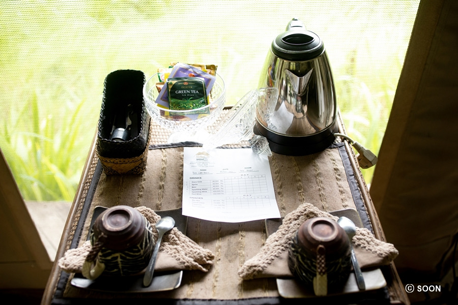 생각보다 작은 규모의 부티크 숙소라서 총 5개의 텐트 그리고 3개의 럭셔리 룸붕을 가지고 있었고, 총 8개의 룸타입이 있었기 때문에 숙소를 금방 둘러볼 수 있었다. 그리고 내 텐트로 안내받았는데, 모든 숙소는 프라이버시를 중요하게 생각한다며 들어가기 전에 저렇게 종을 울리고, 만약 숙박객이 답이 없는 경우는 다시 돌아간다고 했다. 하우스키핑이나 턴다운 때나 등등 올 때 무조건 종이 울렸다^^