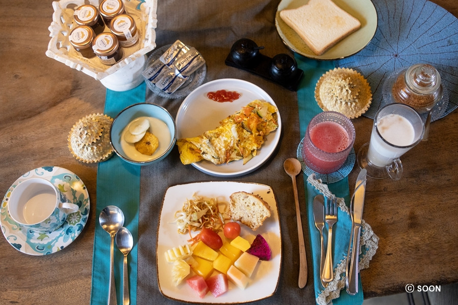 미고랭 있었고, 에그 메뉴는 주문할 수 있어서 오믈렛 주문해서 아주 맛있게 먹었다. 빵 중에 식빵 하나 구워달라고 하고 바나나 머핀 하나 집어왔는데 저게 중간에 견과류가 가득 박혀있어서 너무너무 맛있었다! 다음날도 있었으면 참 좋았을 텐데 그 점은 참 아쉬웠다.