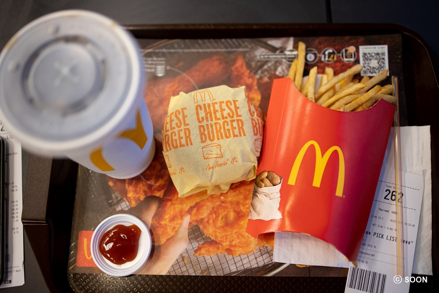 그래서 그냥 칼로리 높은 맥도널드로 갔다. 뭔가 기름진 게 당겼다. 맥도널드 갔는데 생각보다 햄버거가 비쌌다. 버거킹이랑 별 차이가 없어 보였다. 제일 저렴한 게 치즈버거 세트라서 그걸로 시켜서 먹었는데 한국이랑 비슷하거나 비싸보여서 일단 10밧 추가해서 사이즈업을 했더니 콜라랑 감자튀김이 엄청 큰 걸로 나와서 그나마 그걸로 배부르게 먹었다. 버거는 양이 너무 적었다. 그래도 맛은 뭐 전세계어딜가도 똑같은 것 같아서 다행이었다. 유튜브 보면서 치즈버거 세트 잘 먹고 숙소 돌아와서 씻고, 사진정리하고 쉬다가 새벽에 잘 잤다.