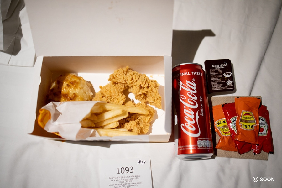 어제도 새벽에 잠이 들어서 10시쯤 잠에서 깨서 씻고 금요일이라 여행기 브런치에 업로드하고 인터넷 서핑이랑 유튜브 보다가 12시 반에 점심으로 지난번에 푸드판다에서 양이 적지만 맛있게 먹었던 치킨라이스집에서 사이즈 큰 거랑 타이 밀크티 같이 시켜서 아주 맛있게 먹었다. 사실 이 집은 큰 사이즈가 호텔 앞 치킨라이스 보통사이즈보다 작게 느껴졌다. 큰 사이즈로 시키면 포장그릇이 큰 게 오겠지 했지만 설마 했는데 전에 왔던 작은 그릇에 그저 조금 더 담겼을 뿐이었다. 만약 이 집의 타이밀크티가 맛이 없었다면 나는 절대로 여기서 시켜 먹지 않았을 것 같다. 양이 많이 아쉬웠다.