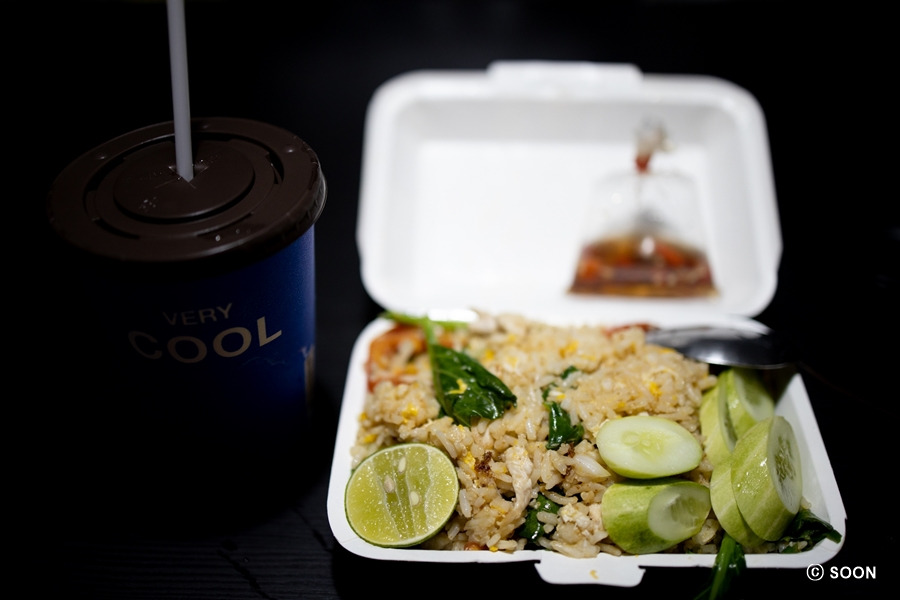 잘 먹고 예능 보고 쉬다가 저녁은 멀 먹을까 또 고민했다. 할 일도 딱히 없고, 드라마를 보고 싶긴 한데 왠지 다음숙소에 가면 큰 티비에 연결해서 보고 싶어서 미루고 있는 것도 있어서 딱히 할 게 없으니까 뭔가 빈둥빈둥 댔던 것 같다. 매일 거의 멀 먹을지만 계속 고민하는 시간이 아마도 제일 크지 않을까 생각된다. 오늘은 그냥 제일 많이 갔던 로컬 현지 식당으로 6시가 조금 넘어서 가서 치킨 볶음밥 포장했고, 오는 길에 세븐일레븐 들렀는데 타이밀크티 있길래 바로 구매!