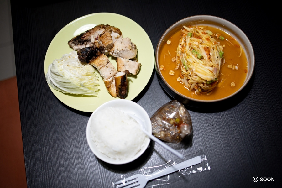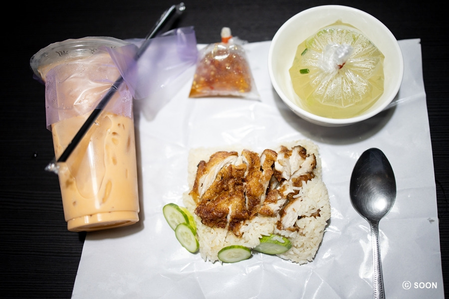 12시쯤 치킨라이스집에서 치킨라이스 시켜놓고 밀크티집 가서 타이 밀크티 픽업받아서 왔더니 치킨라이스 바로 와있어서 기뻤다. 그래서 바로 맛있게 치킨라이스 먹었다. 이 집은 양은 정말 많은데 음료를 같이 안 팔아서 아쉽다. 보통사이즈를 시켜도 딱 배불러서 너무 좋다! 잘 먹고 올라와서 예능 보고 쉬다가 월요일이라 미국주식 예약걸어두고 이것저것 하다 보니 또 저녁 먹을 시간 되어서 오늘은 엊그제 먹은 쏨땀집에서 쏨땀이랑 그릴 치킨시켜서 세븐일레븐에서 밥 사가지고 기다렸는데 이 집 BBQ는 숯불향 덕분에 치킨도 맛있고, 돼지고기도 맛이 좋았다. 치킨이 양이 더 많은 대신 가격이 더 비싼데 치킨은 손에 기름이 많이 묻어서 다음번부터는 치킨 먹고 싶을 때만 시키고 목살을 주로 시켜야겠다.
