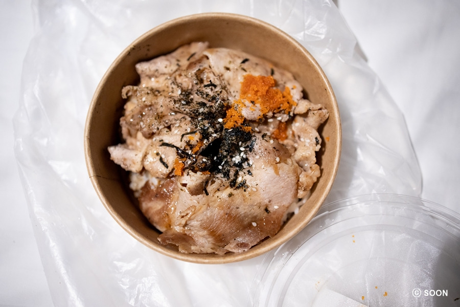저녁은 뭘 먹을까 고민하는데 그랩푸드 50밧 할인 쿠폰이 있길래 그걸로 덮밥이랑 음료 함께 오는 세트가 있길래 그걸로 시켰다. 태국 심카드로 그랩 푸드 처음 할인받았을 때는 버거킹을 시켰어서 이렇게 늦을 줄 몰랐는데 업체마다 조금 다르겠지만 푸드판다보다 그랩이 조금 더 늦게 도착했다. 그리고 그랩아저씨도 호텔을 못 찾아서 내가 멀리까지 나가야 했는데 오늘은 낮부터 비가 와서 아쉽게 비를 맞아야 했다. 잘 받아서 방에 와서 열어보니 생각보다 양은 적었다.