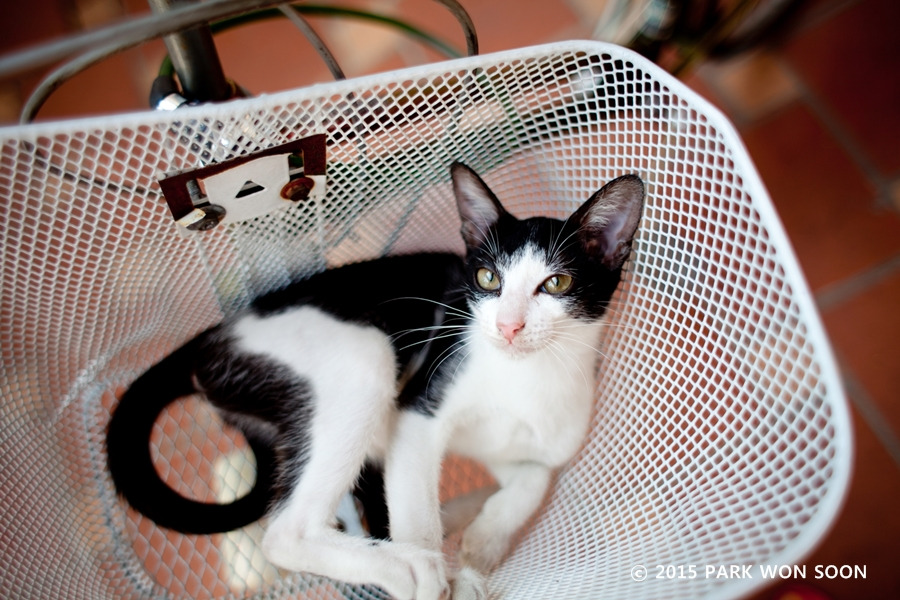 자전거를 타고 나서려고 하는데 요 녀석이 나를 요염하게 쳐다보고 있었다.