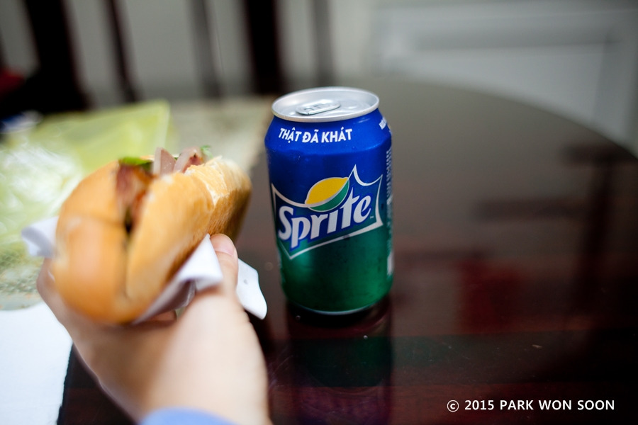 이제 좀 쉬다 호이안 풀문 보러 가야지 ㅋㅋ이제 다낭-호이안 버스는 나를 현지인으로 보는 건지 ㅋㅋ 오늘도 버스비는 현지인 가격으로 지불~ 오면서 버스 안에서 성당이랑 마블 마운틴 사진도 찍고 여유롭게 호이안 도착! 숙소 바로 와서 피곤해서 여주인장에게 샌드위치 있냐고 물으니 있다고... 키티가 호이안 샌드위치 되게 유명하다고 그랬는데 여주인장에게 물어봤더니 사다 주겠다고 Wow~ 쌩유~ 아마 내가 샀으면 이것도 두배 주고 먹었을 듯 ㅋ 암턴 맛있게 스프라이트와 냠냠.
