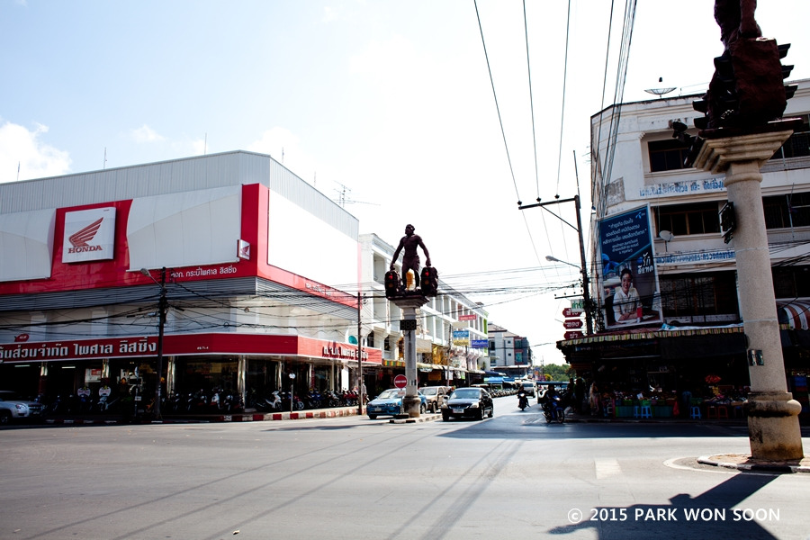 사원에서 내려와서 크라비 타운의 메인 사거리의 오라우탄? 원숭이? 신호등을 사진 찍고 ㅋㅋ