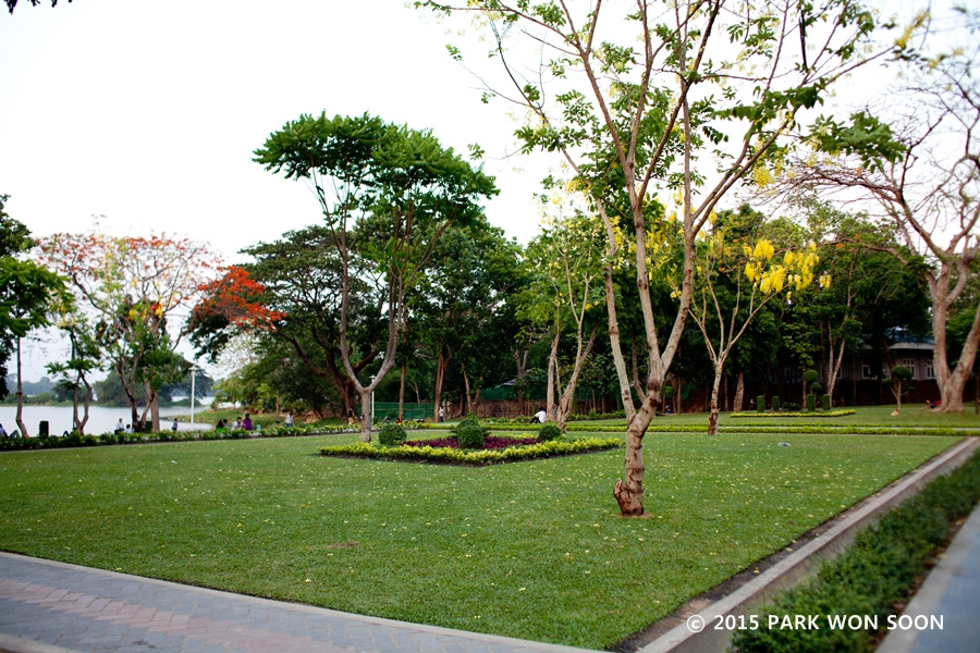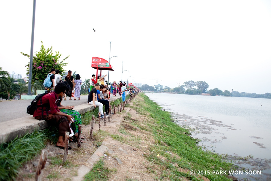 밤이되면 애정행각 되게 많이 한다고 하던데 아직 해가 안 져서 그런지 그냥 붙어 앉아 있는 정도였다 ㅎㅎ 우산으로 가린 커플도 많이 보였다 ㅎㅎ 인야호수에서는 양곤 사람들의 평온한 모습들을 볼 수 있었다. 우리도 덩달아 앉아서 잘 쉬고 좋았다. 공원도 좋고 인야 호수도 좋고 시원했다.
