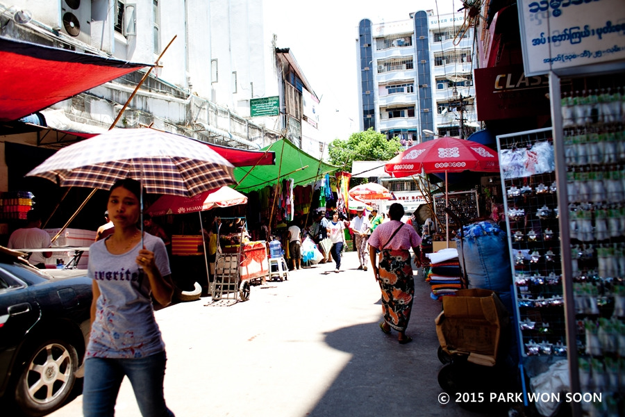 양곤은 하루면 충분했다. 첫째 날 반나절 보고 둘째 날 많이 쉬고 하루 보고, 양곤에서 마지막 날은 쇼핑데이로 정했다. S에게 맡겼는데 S는 딱히 좋은 의견이 없다며 ㅋㅋ 결국 인포 직원에게 물어보라고 시켰는데 어제는 분명 오늘 쇼핑해도 된다고 했는데 오늘 물어보니 인포 직원이 오늘은 시장이 문 닫는 날이라고 ㅋㅋ 그래서 우리는 문 닫아도 가서 사진 찍겠다고 갔다 ㅋㅋ