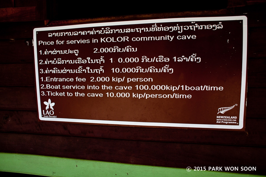 국립공원 입장료 2,000킵, 동굴 입장료 10,000킵, 보트 1대 100,000킵 (3명까지 탑승 가능)