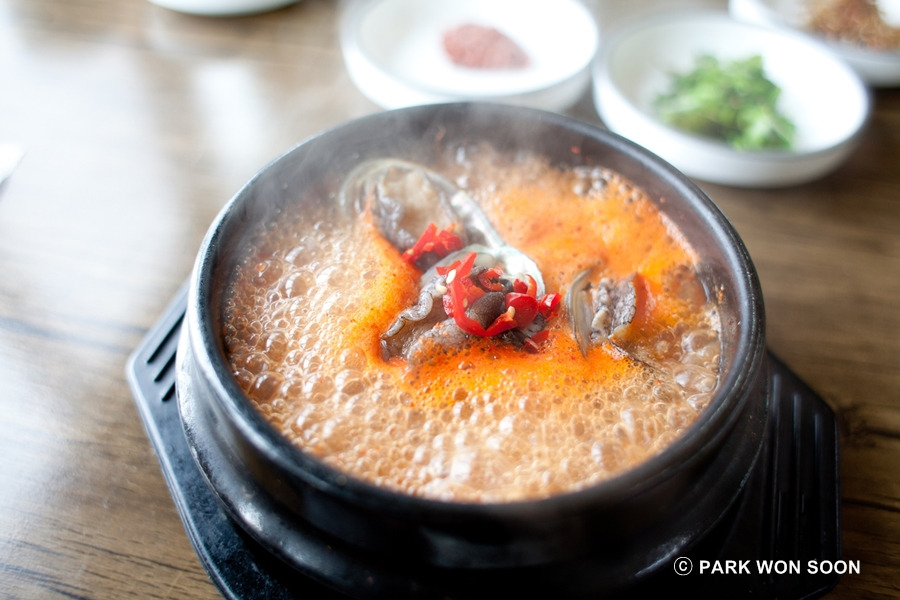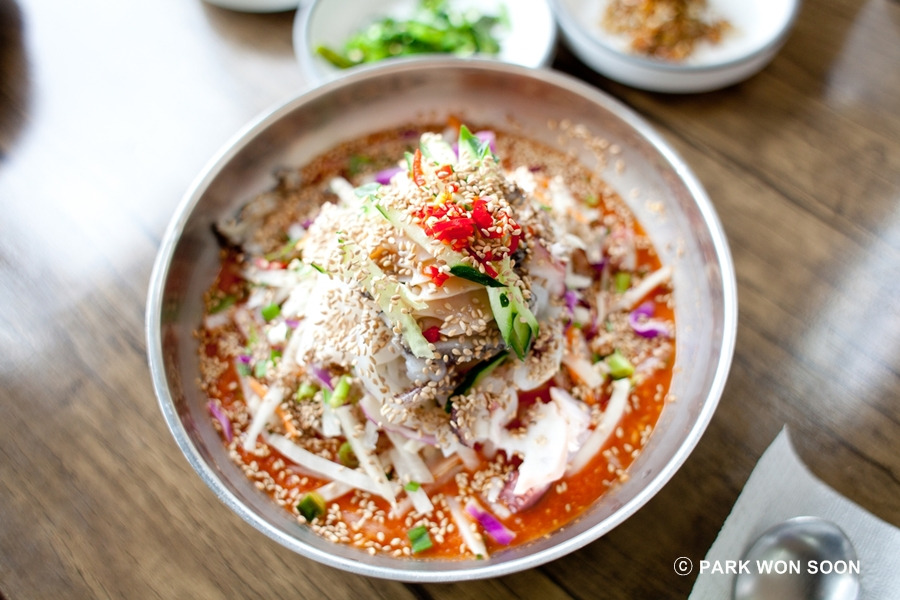 점심쯤 우리를 픽업해서 우리는 월정리로 향했다. 미희는 다가미 김밥을 안 먹어서 그런지 점심으로 김밥을 먹는 것보단 해물뚝배기를 먹고 싶었나 보다. 그래서 식당을 알아보고 가서 점심은 그곳에서 먹고 배고플 때 김밥을 먹기로 했다. 검색해서 간 곳에서 회국수는 탁월한 선택이었다. 미희가 택한 전복뚝배기도 전복이 살아 움직여 맛있어 보였다.