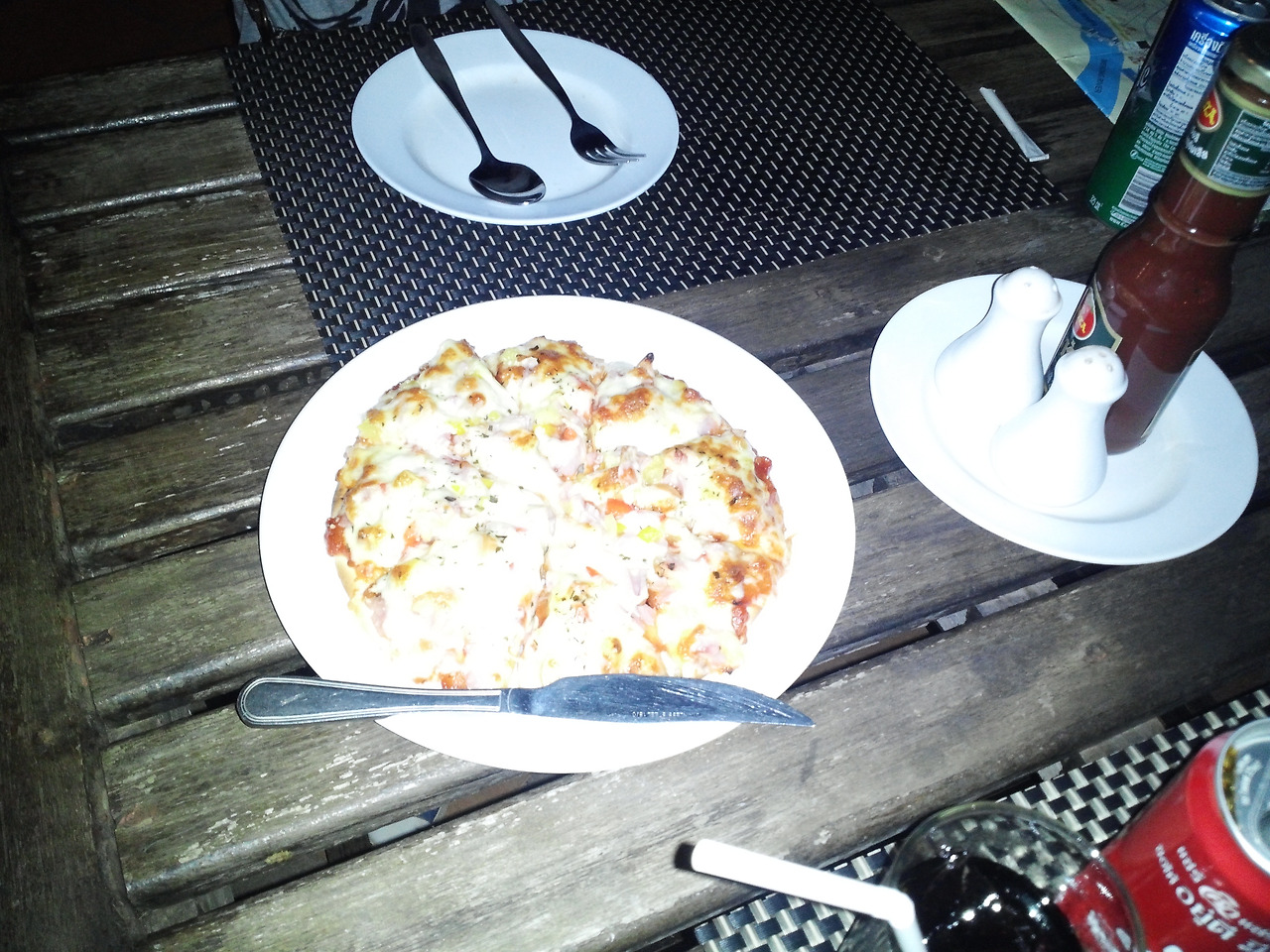 오후 5시쯤 인터넷이 너무 하고 싶어서 에어컨 빠방 하게 나오는 팍세 카페에 가서 아이스 그린티 한잔 시켜놓고 시판돈 4000개의 섬 중에 어디에 갈지 정했고, 내일 버스를 어떤 걸 타고 갈지 정했다. 그리고 팍세 강변 다리 앞 전망 좋은 그랜드 호텔 레스토랑에서 피자 먹고 들어와서 잘 잤다.