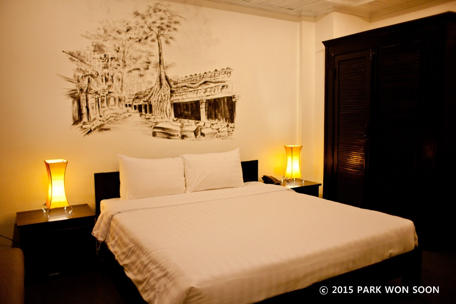 벌써 시엠립에서 열두 밤이나 잤다. 오늘은 숙소를 옮기는 날~ 시간 참 잘 간다 ㅠㅠ 이번엔 몸상태가 메롱이여서 그런지 여기서 한 게 별로 없는 것 같아서 아쉽다. 늦잠을 자고 짐을 싸고, 열흘 동안 나름 친해진 스텝 친구들과 인사를 나누고 툭툭을 잡아타고 호텔로 왔다. 지난번에 숙소 갈 땐 모토로 짐 옮기고 자전거 타고 갔었는데 이번엔 호텔이기도 하고, 모토가 숙소 앞에 없어서 ㅋㅋ 비싸도 툭툭은 자전거를 안타도 되니까 ㅋㅋ