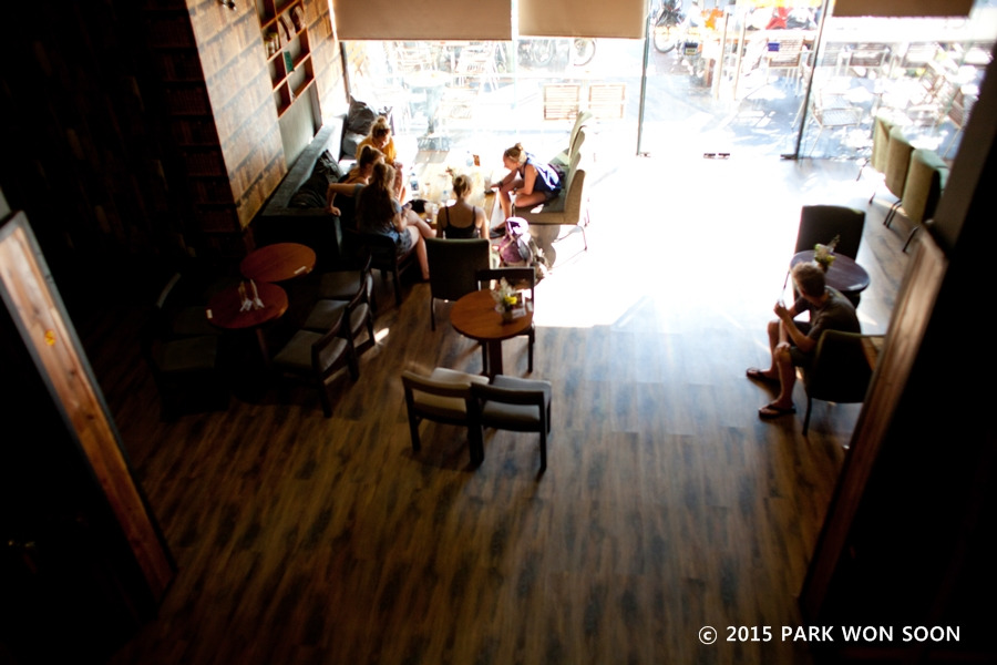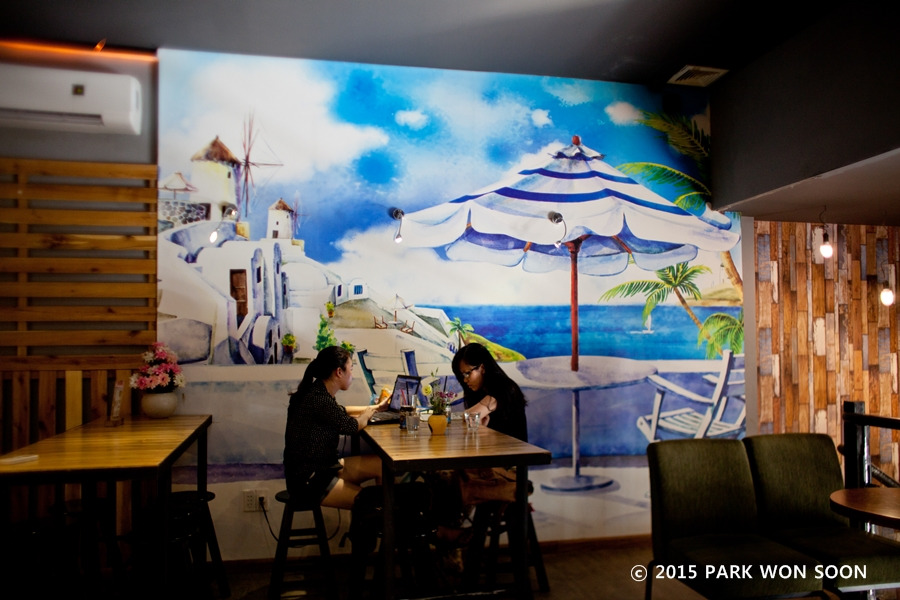 사진 조금 찍고 너무 더워서 바로 노트북 챙겨서 나올 때 봐 둔 카페로 향했다. 손님 많을 줄 알았는데 가격표 보니 여기 커피숍 치고는 약간 가격대가 있어서 그런지 외국 관광객뿐이라 여유롭게 아이스 모카 한잔 주문하고 노트북 켜고 사진 정리를 했다. 에어컨 나오는 커피숍에서 띵까띵까 놀다가 노래도 듣고 그러다가 배고파서 5시 반에 숙소 와서 짐 놓고 저녁 먹으러 갔다.