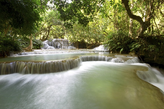라오스 루앙프라방에 위치한 쾅시폭포는 석회암 지형으로 이루어져 내려오는 물이 에메랄드 빛을 띠는 멋진 모습을 감상하며 수영 및 점핑을 할 수 있다.