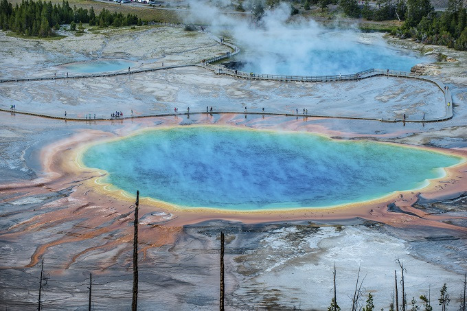미국 옐로스톤 국립공원(Yellowstone National Park)의 상징인 그랜드 프리스매틱 스프링은 세계에서 세 번째로 큰 온천이며, 아름다운 무지개색을 띠고 있다.