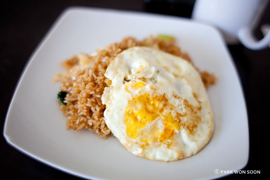 잘 보고 아저씨가 호텔까지 잘 데려다줬고, 고맙다고 인사하고 돈 드리고 헤어졌다. 아저씨도 땡큐 하고 잘 갔다. 배고파서 짐 놓고 바로 현금 챙겨서 밥 먹으러~~ 근데 카메라는 놓고 감 ㅋㅋㅋ 배가 엄청 고팠던 거지 ㅋㅋ 지난번에 먹었던 미고랭 집 갈려고 했는데 그때 가다가 본 백반집이 생각나서 거기로 갔다. 직원이 접시에 밥을 퍼서 나한테 주면, 내가 반찬들 중 먹고 싶은걸 고르면 된다. 치킨 한 개, 새우튀김 한 개, 깻잎무침 같은 거 피자 모양으로 생긴 계란야채말이? (이거 향신료 대박 한입 먹고 버림ㅋ), 두부 등을 담았다. 아저씨는 OK 하더니 음료는? 그래서 첫날 저녁에 먹었던 음료수 사진을 보여주니 알아서 병뚜껑 따서 세팅!