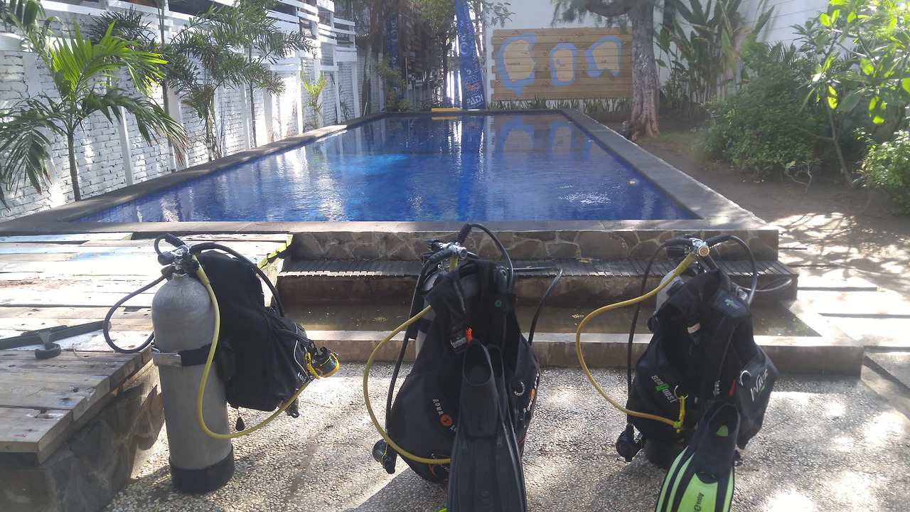 다이빙 체험 코스 : 수영장 연습 + 바다 1회 950,000 루피아 (바다 2회는 150만 루피아 미만이었던 걸로 기억한다.)