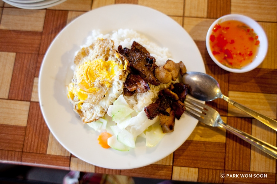 바이는 캄보디아어로 밥이고, 사찌루는 돼지고기이다. 이게 밥에 돼지갈비 같이 양념이 된 불맛 나는 돼지고기 목살 구이가 올려져 나오는 캄보디아 음식인데 우리 입맛에도 잘 맞고, 싸다 ㅎㅎ 오 나왔는데, 계란 프라이까지 얹어서 나온다 ㅎㅎ 마음에 든다. 칠리소스가 안 나오길래 쳐다봤더니 가져오고 있다 ㅎㅎ 맛있게 먹고, 아이스 레몬티까지 다 마시고 숙소로 돌아오는 길에 첫날 먹었던 아이스 그린티 하나 사가지고 숙소로 돌아왔다. 비가 올 것만 같아서 얼른 들어와서는 씻고, 아이스 그린티 잘 먹고 잘 잤다.