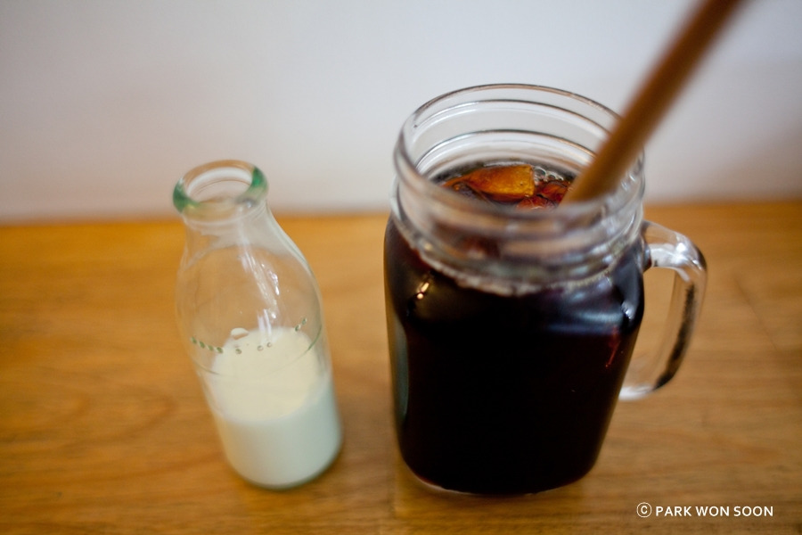 0.5$ 추가하면 우유를 함께 준다. 아메리카노를 마시다가 라테로 마실수 있는 장점이 있다.