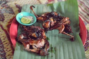 서 바라이 호수 앞에서 먹었던 병아리 구이
