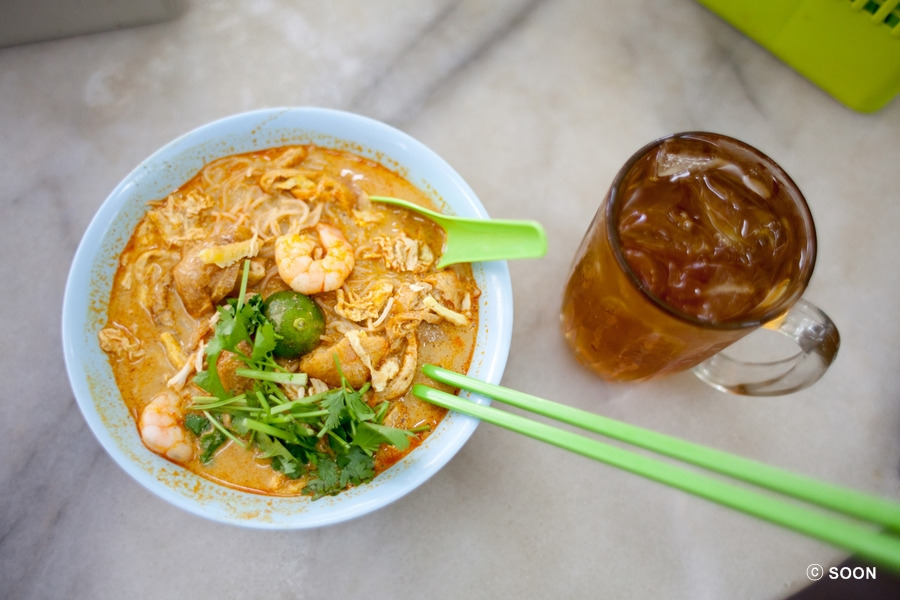 현지 락사 맛집으로 항상 사람들로 붐비는 곳이다. 특히 점심시간이나 저녁시간에는 대기를 해야 할 정도이며, 현지인이나 관광객 모두에게 인기 있는 식당이다. 락사는 향신료 때문에 호불호가 갈릴 수 있는 음식 중 하나이지만 똠얌꿍을 먹을 수 있다면 락사는 당연히 가능하고, 필자는 똠얌꿍은 못 먹지만 락사는 먹으니 그 중간쯤이라고 보면 되겠다. 라임, 코코넛 밀크 등이 들어가기 때문에 호불호가 갈릴 수 있다. 하지만 꼭 한 번 도전해 보기 바란다.