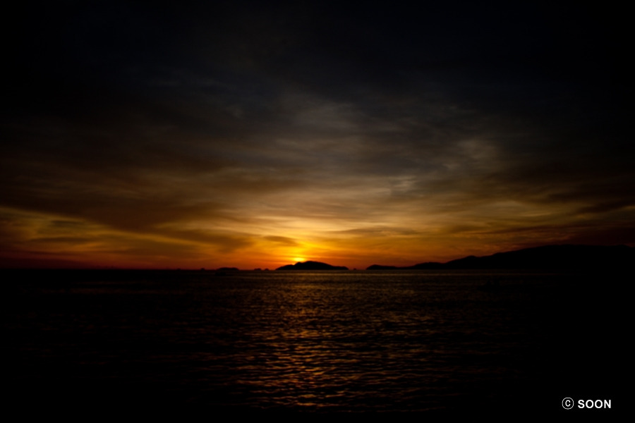 멋진 일몰도 보았다. 이제까지 휴양지로는 꼬사무이나 크라비가 좋았다면, 이젠 꼬리뻬가 제일 좋았다고 말해도 괜찮을 정도로 좋았다.